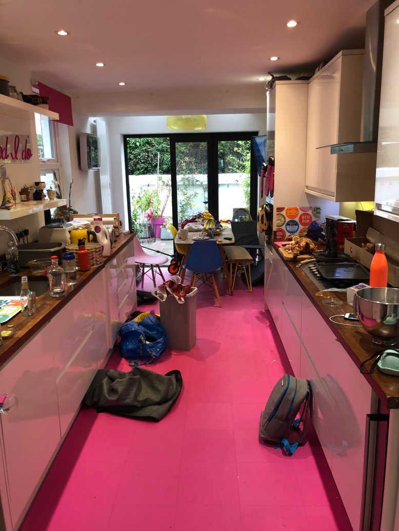 I hate my house. There I said it. Not the actual building, not the decor (we’ve spent the last nine years plowing almost every spare ££ into doing it up, so that’s definitely not the case). But the STATE of my house drives me nuts. It’s ALWAYS messy. Let’s be clear, when I say messy, I mean MESSY. Not the sort of messy that, when you turn up on someone’s doorstep they say “oh, sorry about the mess” and you look and think “what mess?” (just me?). Not the sort of mess when you can clearly see that the children who live there have just had a fun morning pulling toys out. This is full-on-how-on-earth-do-you-let-it-get-that-bad-and-still-sleep-at-night-messy. The photos I’m posting will hopefully prove it to you – I’m so far from insta-worthy I need a double insta-gin and tonic.